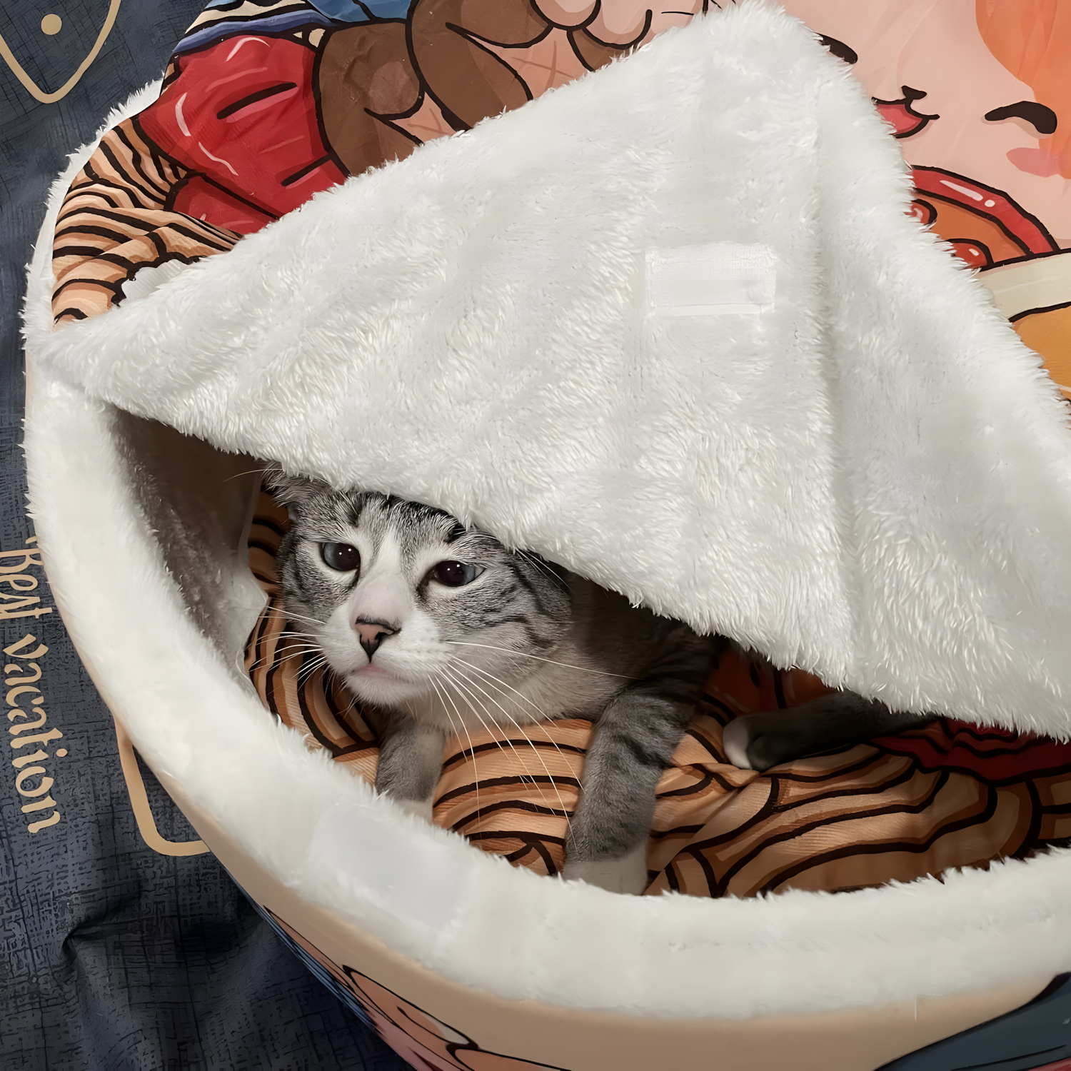 The unique ramen-bowl design with curly tufting makes this bed a fun addition to your home décor, adding a playful touch that guests will surely admire. It's both a pet bed and a conversation starter!