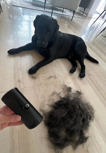 The tool gathers hair into clumps you can lift. For big shedders, brush outdoors or over a mat/trash bag to keep cleanup quick. Bonus: many customers also use it to de-fur car seats, carpets, and furniture between brushes.