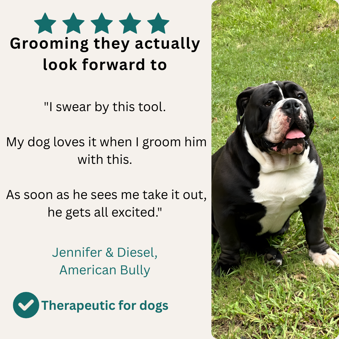 Turn grooming from a struggle into a soothing, pro-level routine at home. Groomy’s groomer-inspired teeth lift only the already-loose undercoat—no blades, no nicks, no tugging—so pets relax while the shed comes out fast.