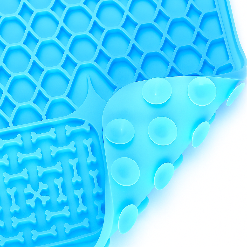• 49 ventouses puissantes — adhère fermement au carrelage, au verre, à la baignoire et au réfrigérateur pour garder votre animal concentré pendant le bain, la coupe des griffes ou la visite chez le vétérinaire.